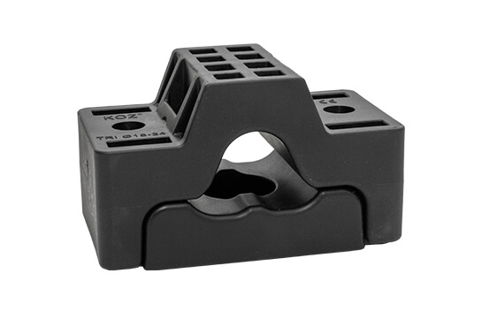 The central fastening hole in the bottom part of this TRI clamp enables more installation possibilities for e.g. masts, poles, concrete or fitting rails.